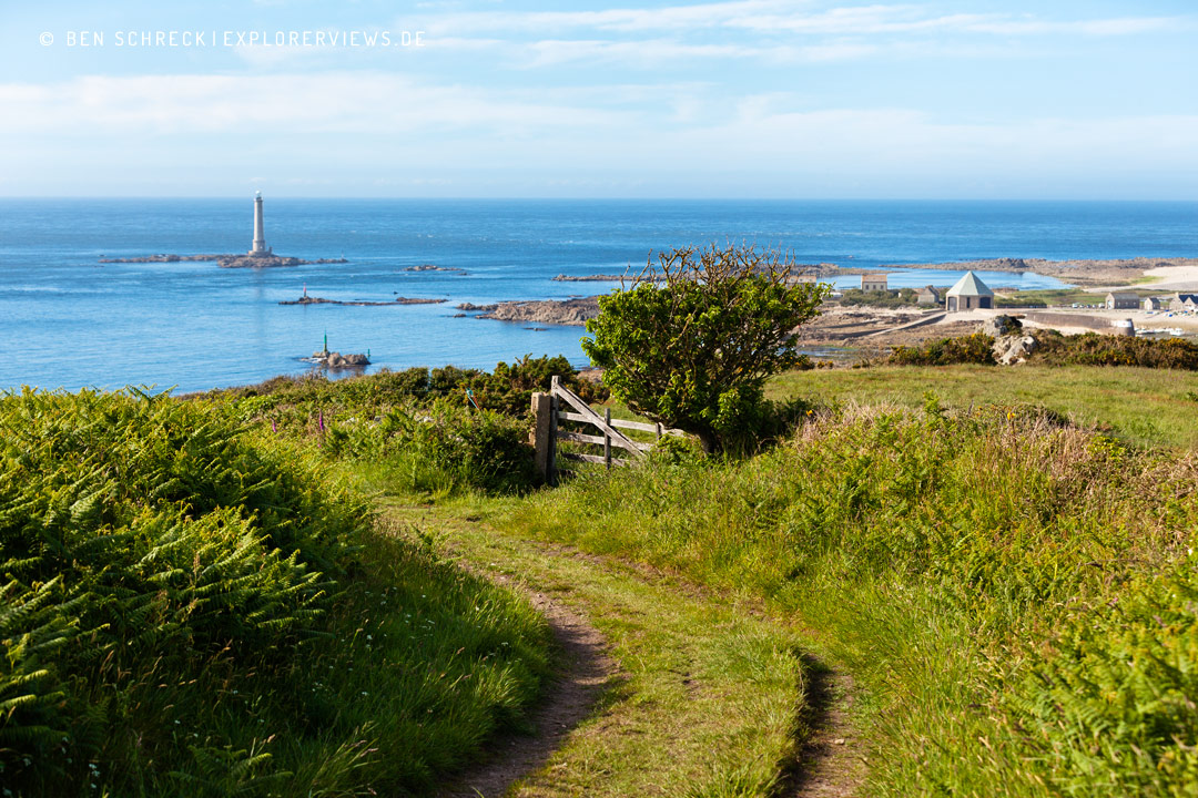 Auf einer Wanderung entlang des Küstenwanderwegs in der Normandie bot sich kurz vor dem kleinen Hafen Goury dieser Ausblick auf den Leuchtturm. Es war ein schöner Frühsommertag mit kaum Wind. Ganz anders als ich diese Küstenlandschaft eigentlich kannte. Von Sturm und Wellen im Winter…