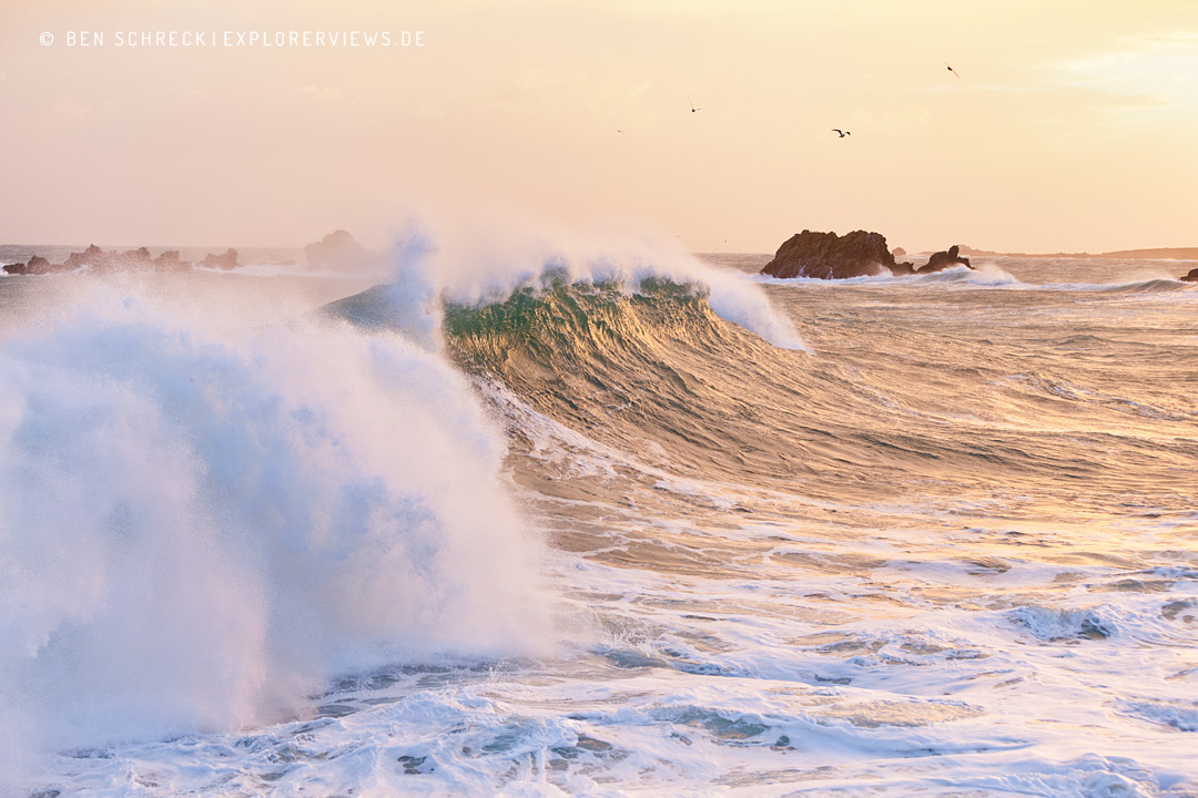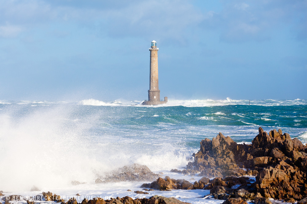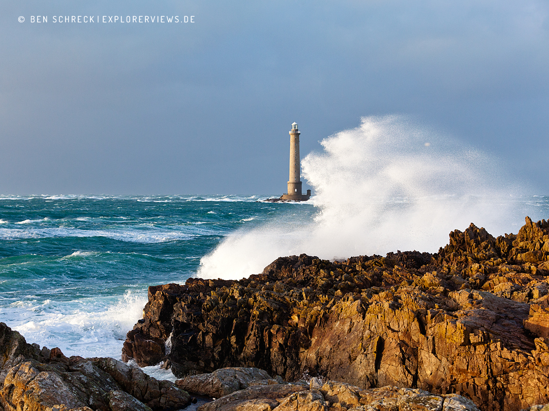Der Leuchtturm von Goury, der auf einer vorgelagerten Felseninsel steht, macht sich besonders spektakulär in den Herbst- Wintermonaten, wenn Sturm angesagt ist. Dann wird die See entlang der Küste aufgewühlt und es kommt zu beeindruckenden Wellen. Aber auch im Frühjahr und Sommer bei ruhigem Wetter strahlt dieser Ort etwas Besonderes aus.