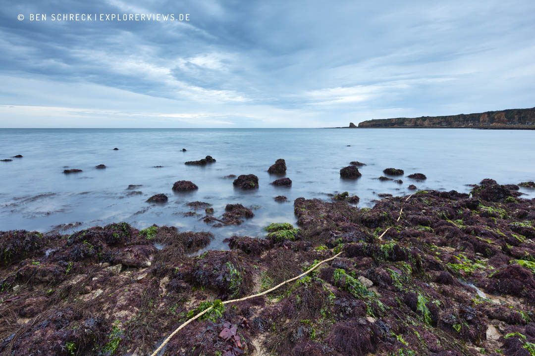 Die Fotos in diesem Beitrag sind in solchen Zeitfenstern bei großen Gezeiten aufgenommen und zeigen die Pflanzen vor allem Algen und Seegras, die sonst unter Wasser liegen. Entstanden sind die Bilder nahe der bekannten Pointe du Hoc.