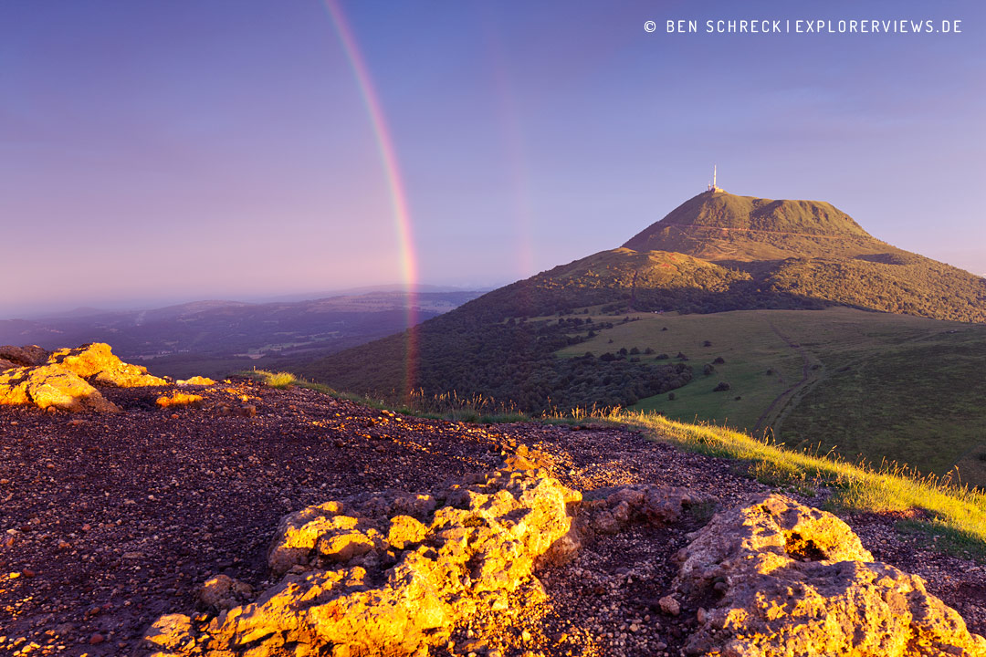 Der Petit Suchet mit einigen kleinen Grotten auf der Südseite und im Anschluß der Grand Suchet, der wieder ein herrliches Panorama bietet, sind eine gute und abwechslungsreiche Wahl. Diese beiden Gipfelchen werden weniger oft besucht, obwohl sie unmittelbar zwischen Puy de Dome und Puy Pariou liegen. Einzig die Schafsherden kann man hier antreffen, die im Sommer die Hochweiden um den Puy de Dome pflegen.